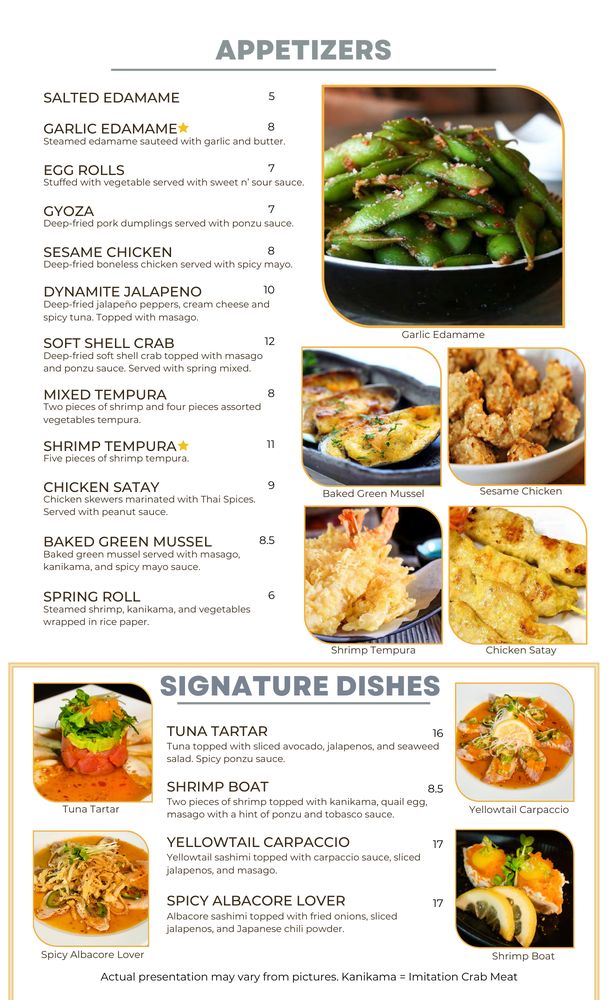 Signature dishes such as the Spicy Albacore Lover and Tuna Tartar impress with their freshness and presentation. Feedback from satisfied patrons highlights the warm, welcoming atmosphere and attentive service. The cozy decor enhances the dining experience, making it a perfect spot for sushi enthusiasts and Thai food lovers alike. With reasonable prices for high-quality dishes, Kitajima Sushi & Thai is a must-visit culinary gem!